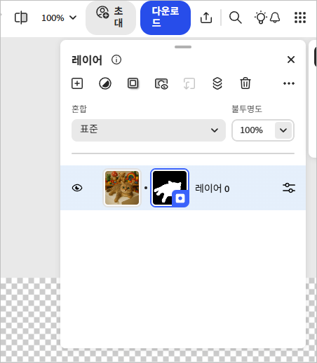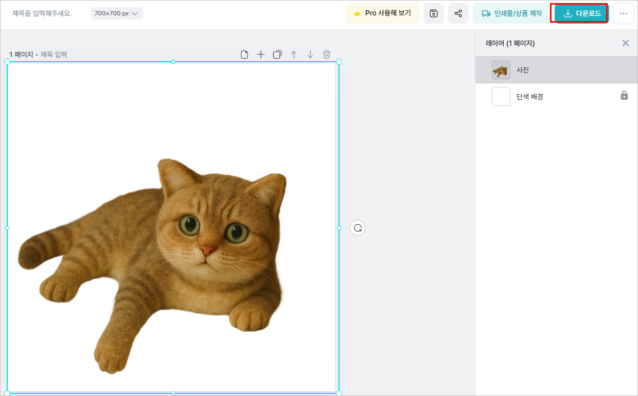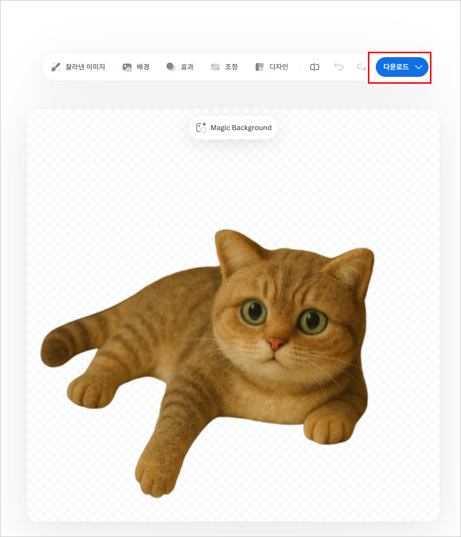 4. 15초 정도 지나니 깔끔한 누끼 이미지가 생성되었습니다. 이제 [다운로드]를 클릭하여 이미지를 다운해주시면 됩니다.
