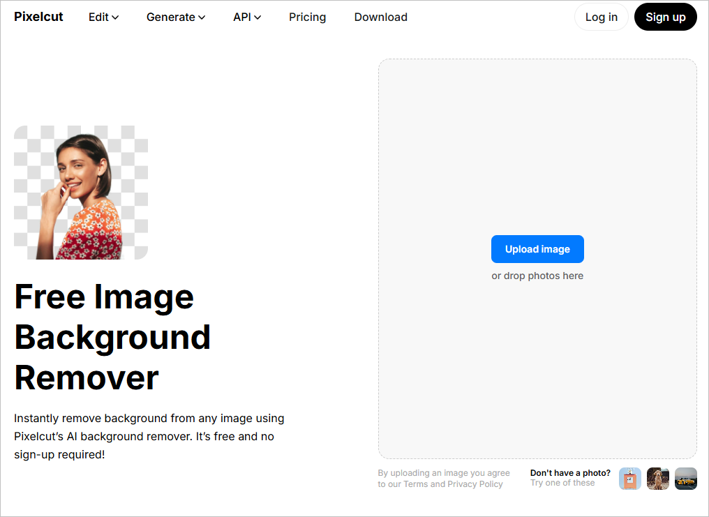 세번째로 추천해드리는 사이트는 픽셀컷 이라는 사이트입니다. 먼저 Pixelcut 홈페이지에 접속해줍니다.