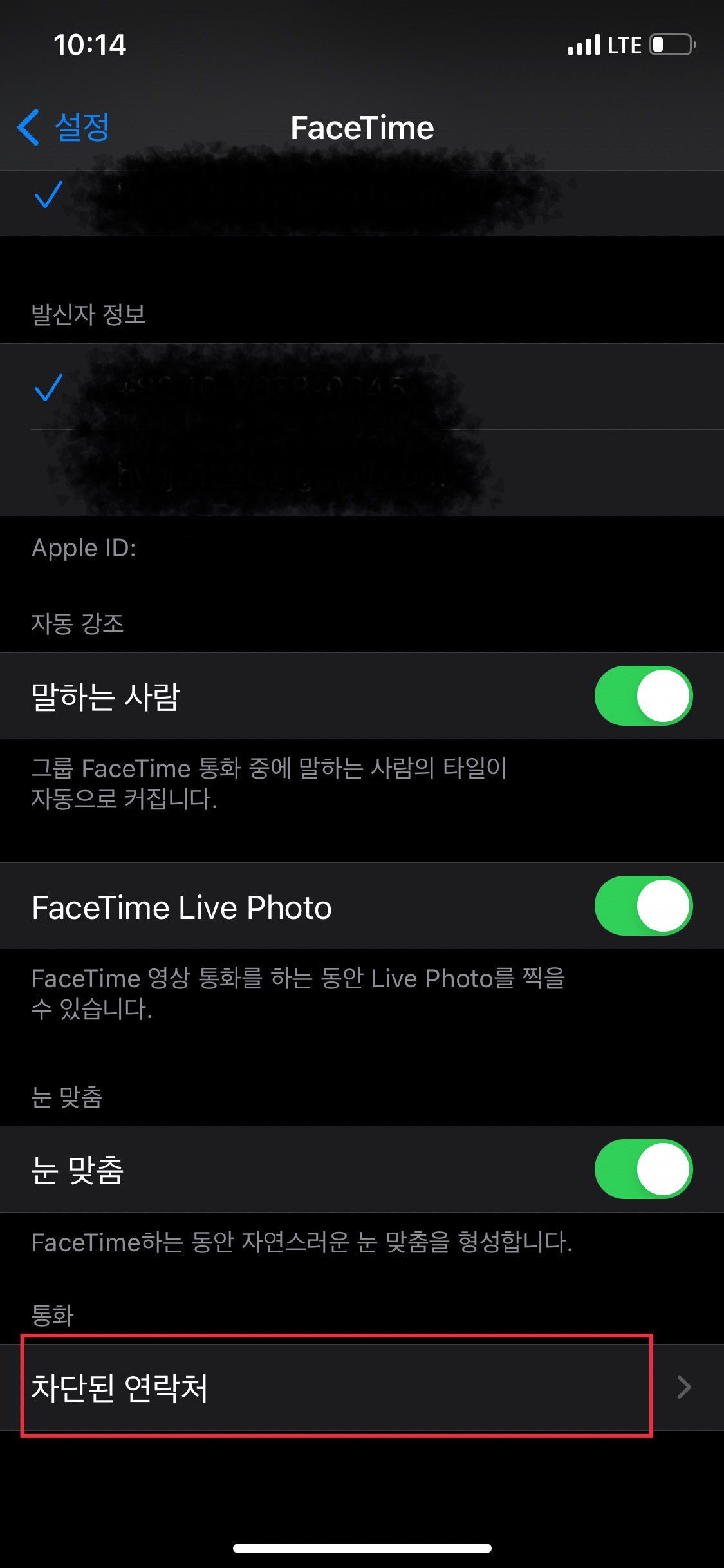 이 차단목록에 있는 번호로부터 오는 메세지, 전화, 이메일, Facetime을 받을 수 없습니다.