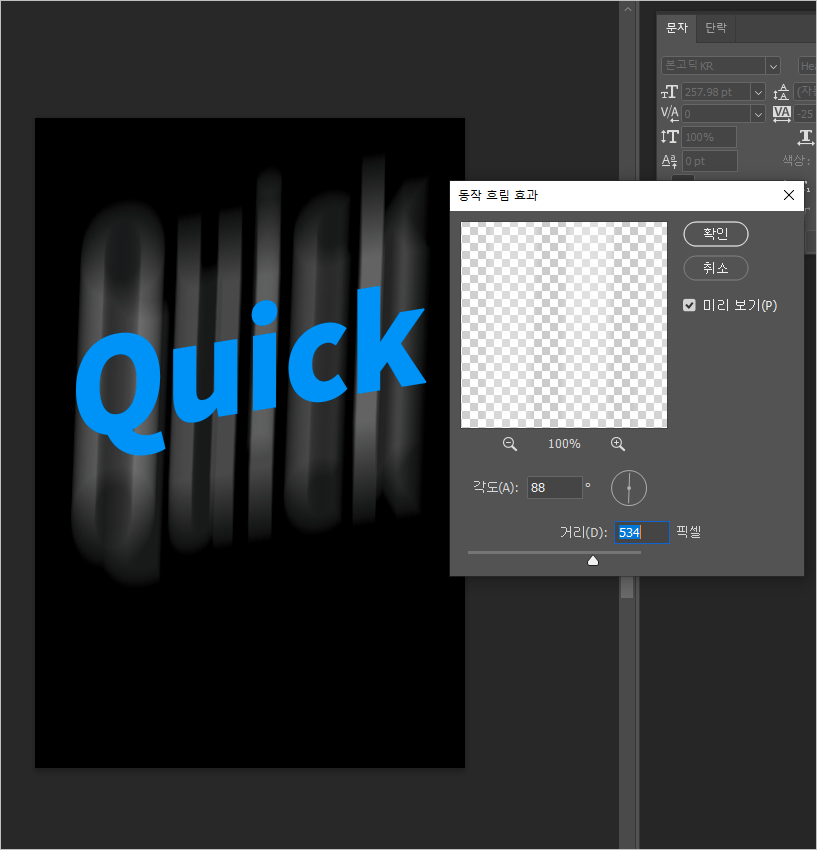 포토샵으로 글자에 속도감 있는 효과를 주는 방법입니다.