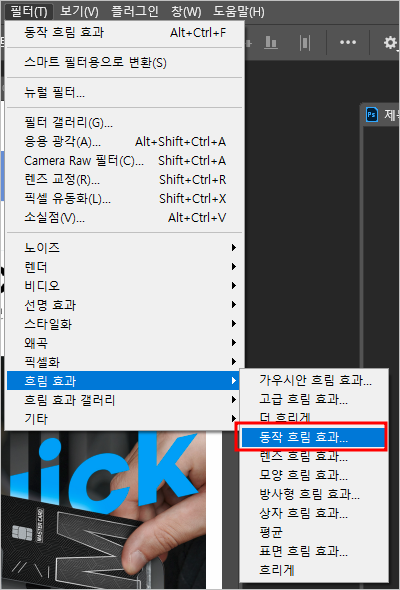 [필터 흐림효과  ▶ 동작효과]로 들어갑니다.